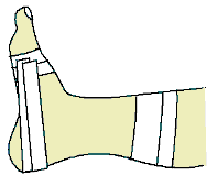 約1−2週包帯・テーピングなどの軽い固定を行います。痛みがあれば、さらに固定を 1−2週続けます。 (図3・4)